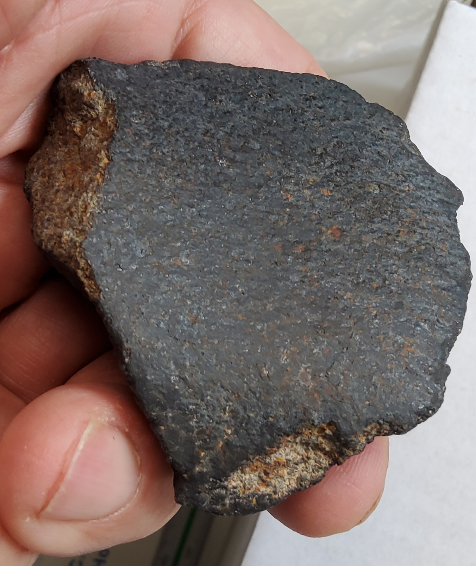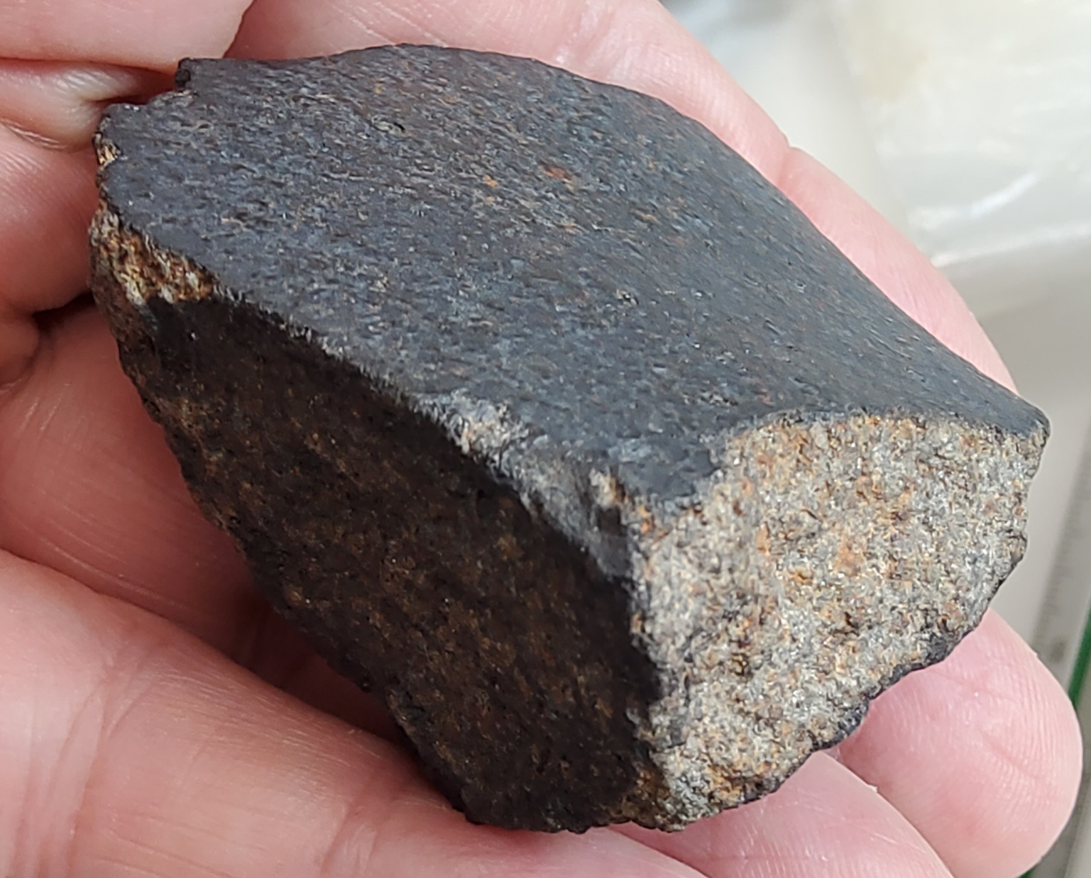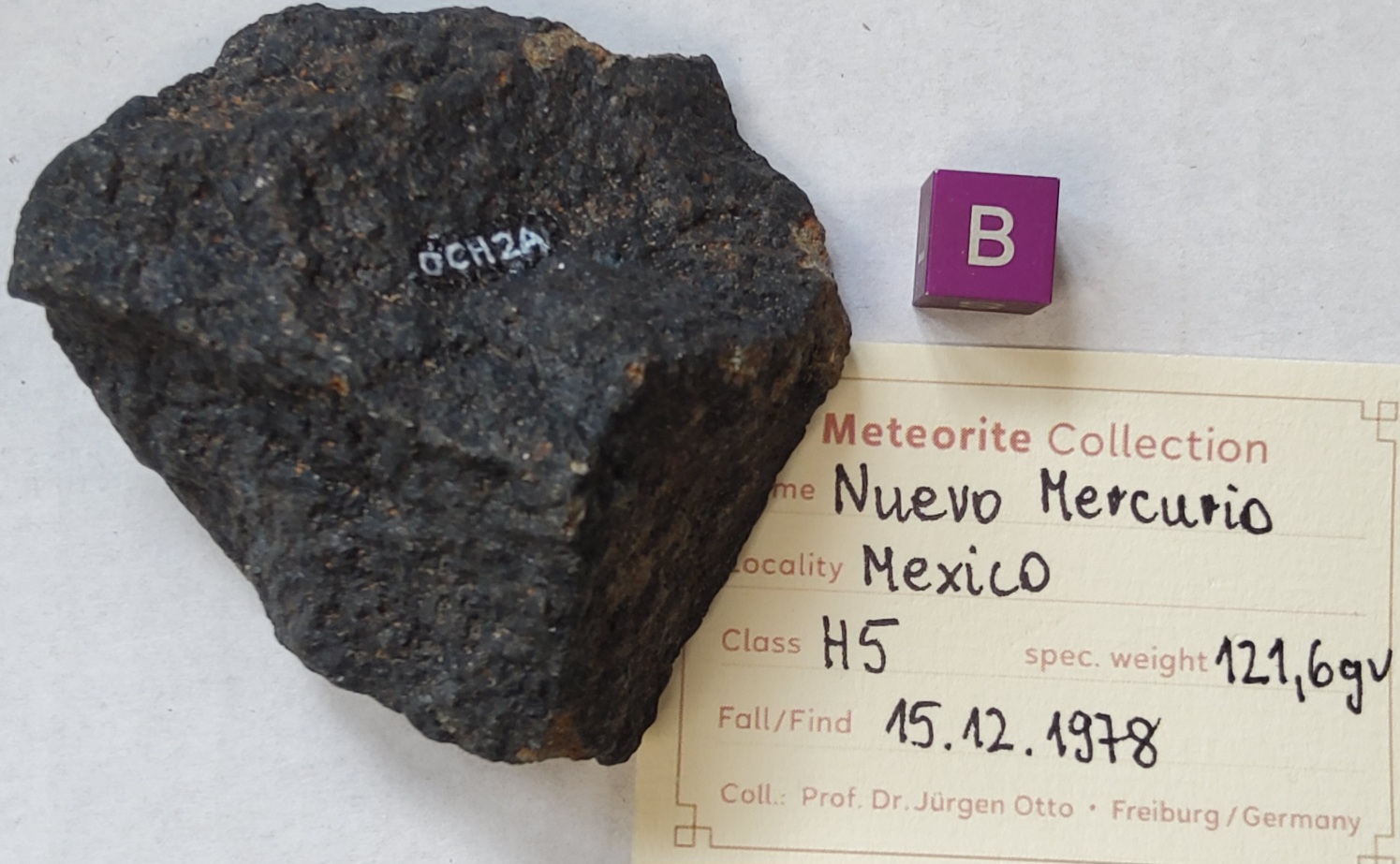 Chondrite H5, 121gr., witness fall 15.Dezember 1978, Mexico, little broken individual, crusted with some flowlines