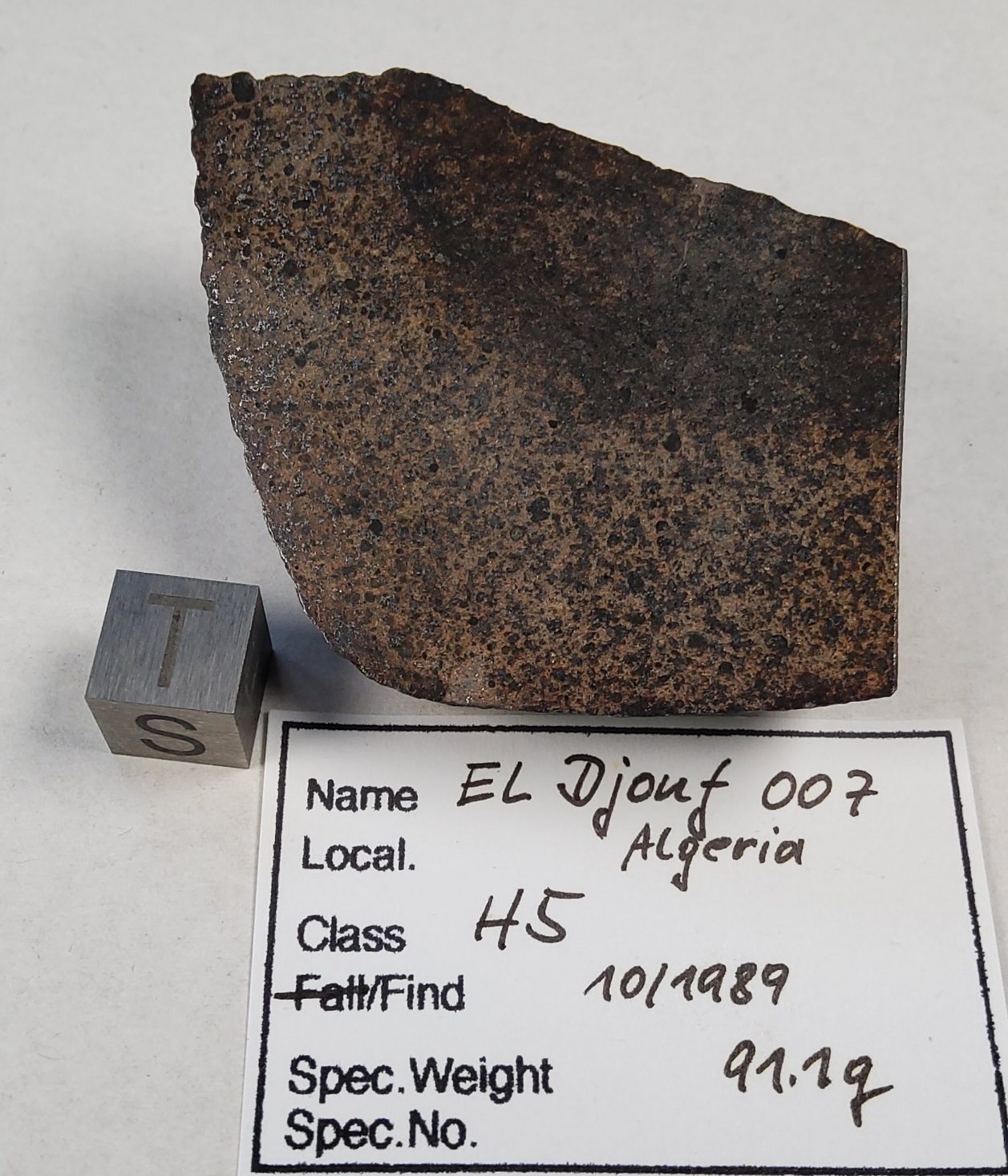chondrite H5, found 1989 in Algeria, cut fragment, polished surface, purchased from classifier